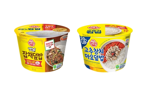 ▲ 오뚜기가 컵밥 신제품인 '옛날 잡채덮밥'과 '고추참치마요덮밥' 2종을 출시했다. 간편하면서도 든든한 한 끼 식사로 컵밥을 구매하는 소비자가 늘고 있어 다양한 소비자 요구에 부응하기 위해 마련된 제품이다.