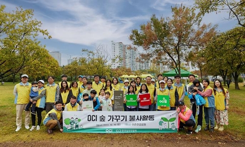 ▲ OCI홀딩스는 지난 14일 서울 이촌한강공원에서 임직원과 함께 ESG(환경·사회·지배구조) 활동의 일환으로 황매화 1천주를 심는 등 'OCI 숲 가꾸기' 봉사활동을 했다고 16일 밝혔다. OCI홀딩스는 2025년까지 이촌한강공원에 6천그루 이상의 묘목을 심어 3천㎡ 규모의 숲을 조성할 예정이라고 밝힌 바 있다. 서진석 OCI홀딩스 사장은 "앞으로도 ESG 활동에 앞장서고 지속 가능한 환경 조성에 기여할 수 있도록 사회공헌 플랫폼을 확대하겠다"고 말했다. (서울=연합뉴스)