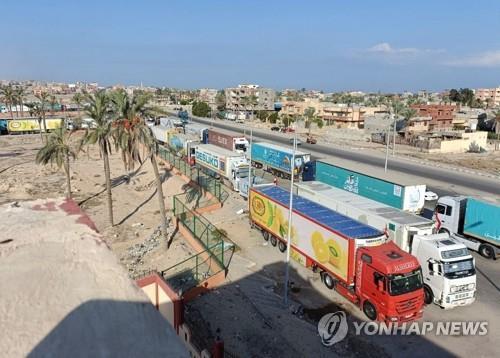 구호물자 실은 트럭 수백대 이집트 국경서 여전히 긴 줄