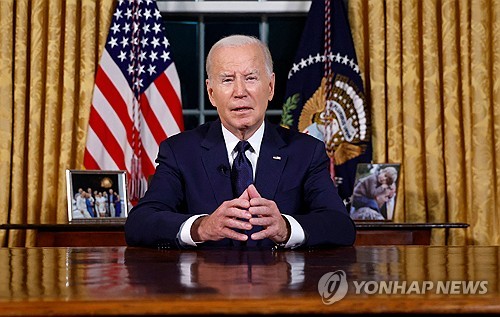 바이든 대통령은 이날 저녁 백악관 집무실에서 행한 대국민 연설에서 "우리는 지금 역사적 변곡점에 있다"며 "이스라엘과 우크라이나의 승리가 미국의 국가 안보에 중요하다"고 강조했다.