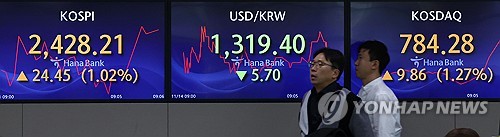 이날 오전 9시 22분 현재 코스피는 전 거래일보다 27.72포인트(1.15%) 오른 2,431.48로 집계됐다.
