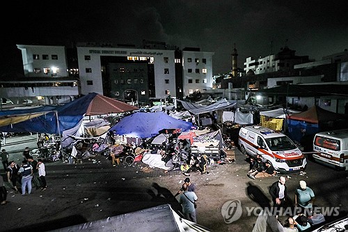 가자지구 보건부는 이날 군사작전 개시 이후에 낸 성명에서 "의료진 등 직원 1천500명과 이재민 7천명가량이 알시파 의료 단지 내에 있다"고 말했다.