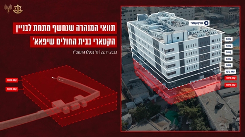 IDF가 이날 새롭게 공지한 영상에 따르면 이번에 발견된 땅굴은 알시파 병원에서 '카타르'라고 불리는 건물 아래에 자리 잡고 있다.