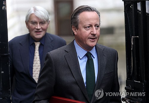 (런던=연합뉴스) 최윤정 특파원 = 데이비드 캐머런 영국 외무부 장관이 5일(현지시간) 소셜미디어 엑스(X)에 올린 글에서 왕이 중국 공산당 중앙정치국 위원 겸 외교부장과 통화하고 건설적 관계를 맺을 의도에 관해 논의했다고 밝혔다.