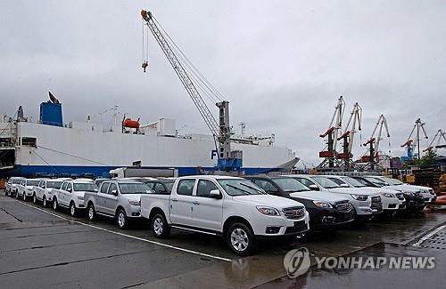 러시아로 수출되는 중국 국영 자동차제조업체인 상하이자동차(SAIC)의 트럭들이다.