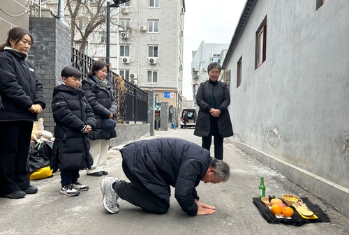 (베이징=연합뉴스) 한종구 특파원 = 13일 오전 중국 수도 베이징의 한 골목 담벼락 아래에 조촐한 제사상이 차려졌다.