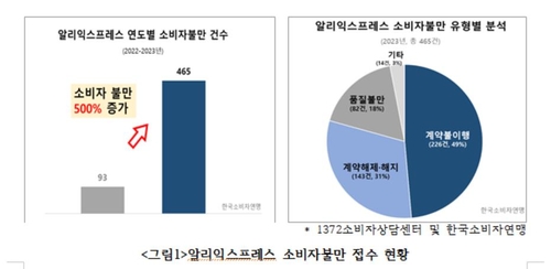 연맹에 따르면 지난해 '1372소비자상담센터'에 들어온 관련 불만 신고는 465건으로 전년(93건)에 비해 5배로 급증했다. 올해 들어서는 불과 한 달 만에 지난해 전체의 3분의 1인 150여건이 접수됐다.
