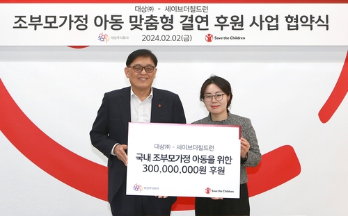 (서울=연합뉴스) 김윤구 기자 = 대상[001680]이 조부모 가정 아동을 지원하기 위해 국제아동권리 비정부기구(NGO) 세이브더칠드런과 업무협약(MOU)을 체결했다고 5일 밝혔다.