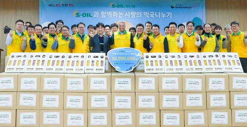 ▲ 에쓰오일(S-OIL)은 5일 서울 마포구 염리종합사회복지관에서 '2024 사랑의 떡국 나누기' 행사를 열었다. 안와르 알 히즈아지 최고경영자(CEO)와 임직원 약 50명은 저소득 지역 주민을 대상으로 떡국 배식 봉사를 했으며, 설 선물꾸러미 200세트를 만들어 전달했다. 아울러 에쓰오일은 기부금 3천만원을 복지관에 후원했다. (서울=연합뉴스)