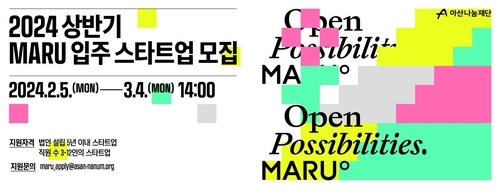 (서울=연합뉴스) 임성호 기자 = 아산나눔재단은 스타트업의 성장을 돕는 기업가정신 플랫폼 '마루'(MARU)에 입주할 스타트업을 모집한다고 5일 밝혔다.
