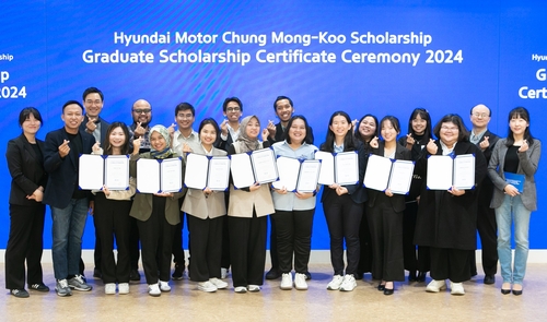 (서울=연합뉴스) 임성호 기자 = 현대차 정몽구재단은 아세안 국가 장학생 14명에게 '현대차 정몽구 스칼러십 장학증서'를 수여했다고 1일 밝혔다.