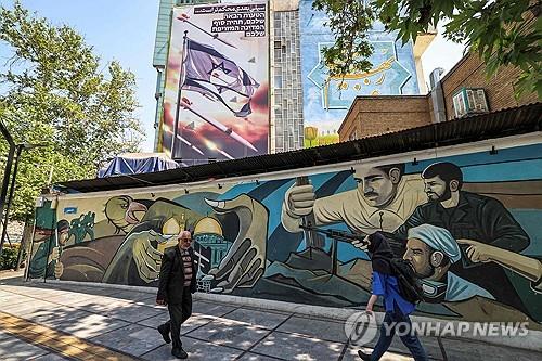 광장의 대형 벽화에는 페르시아어와 히브리어로 "다음번 타격은 더 셀 것이다"라는 문구가 몸통에 새겨진 이란제 미사일이 그려져 있었다.