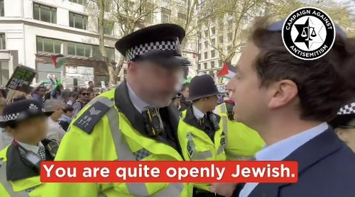 (런던=연합뉴스) 김지연 특파원 = 영국 경찰이 팔레스타인 지지 시위 부근에서 유대인 전통 복식인 키파를 쓴 유대인 활동가를 안전을 이유로 제지하면서 논란이 커지고 있다.