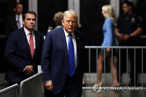 (워싱턴·멕시코시티=연합뉴스) 조준형 이재림 특파원 = 도널드 트럼프(77) 전 미국 대통령의 '성추문 입막음 돈 지급' 의혹 혐의에 대한 유무죄를 가리는 재판의 심리가 22일(현지시간) 본격 시작됐다.