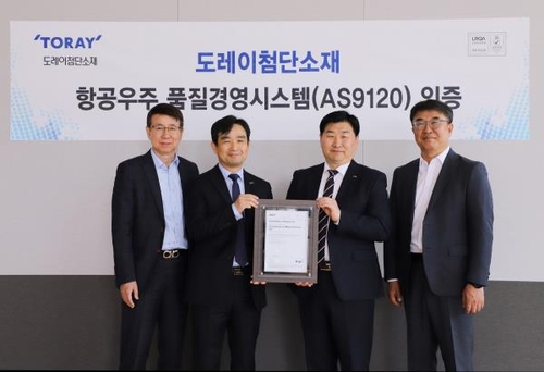 (서울=연합뉴스) 장하나 기자 = 도레이첨단소재가 국제항공우주품질그룹(IAQG)에서 제정한 항공우주산업 품질경영시스템 AS9120 인증을 획득했다고 24일 밝혔다.