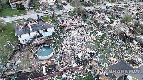 (서울=연합뉴스) 유한주 기자 = 토네이도가 미국 중서부 지역을 강타하면서 주택이 파손되고 부상자가 발생하는 등 피해가 잇따랐다.
