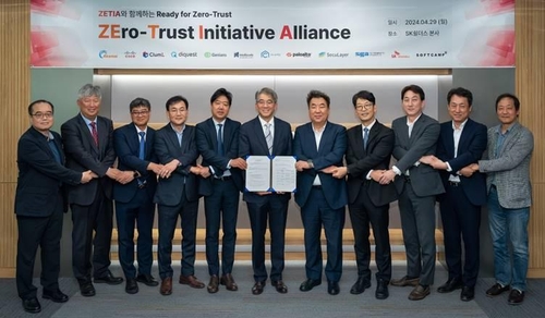 (서울=연합뉴스) 최현석 기자 = SK쉴더스는 29일 국내외 주요 보안 기업과 제로 트러스트 구현 활성화를 위한 협의체 'ZETIA(제티아)'를 발족했다고 30일 밝혔다.