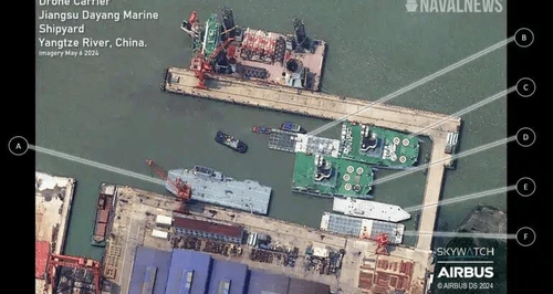 홍콩언론 "일반 항모보다 규모 작고 갑판 직선형…날개폭 20m 中드론 운용 충분한 크기"