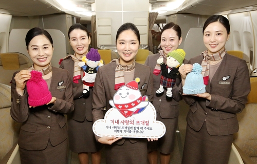 (서울=연합뉴스) 임성호 기자 = 아시아나항공[020560]은 고객 참여 사회공헌 활동인 '기내 사랑의 뜨개질' 캠페인을 코로나19 이후 4년 만에 재개했다고 28일 밝혔다.