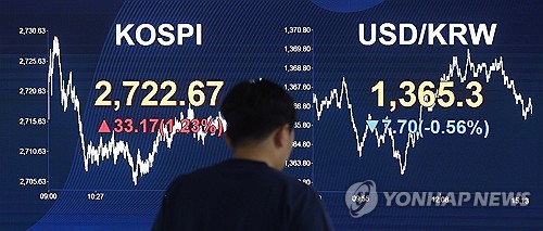 9일 연합인포맥스와 한국거래소에 따르면 지난 7일 코스피는 2,722.67로 전주보다 86.15포인트(3.26%) 올라 앞서 3주간 지속된 하락세에서 벗어나 반등에 성공했다.