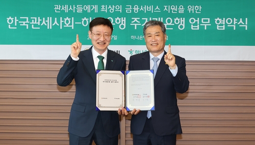 (서울=연합뉴스) 민선희 기자 = 하나은행은 지난 7일 서울시 중구 을지로 소재 본점에서 한국관세사회와 주거래은행 업무협약을 체결했다고 9일 밝혔다.