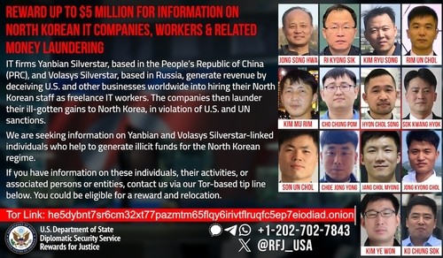 재무부는 "북한은 미국 및 유엔 제재를 회피하기 위해 고도로 숙련된 IT 노동자 수천 명을 전 세계에 파견하고 있다"면서 "북한 정부는 이들 근로자가 수령하는 임금의 최대 90%를 받아 WMD를 위한 수십억 달러의 예산을 매년 창출하고 있다"고 말했다.