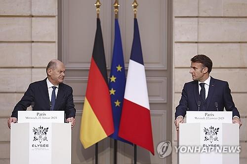 (파리=연합뉴스) 송진원 특파원 = 프랑스와 독일 정상이 미국의 도널드 트럼프 2기 행정부 출범에 맞서 더 강하고 단합된 유럽을 만들어야 한다고 강조했다.
