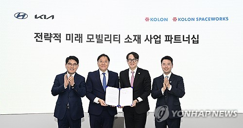(서울=연합뉴스) 김아람 홍규빈 기자 = 현대차·기아와 코오롱그룹이 미래 모빌리티 소재와 기술 개발에 손을 맞잡는다.