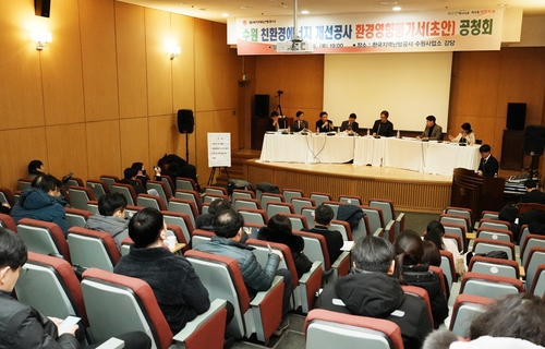 ▲ 한국지역난방공사는 6일 수원사업소에서 지역 주민, 사업 관계자 등이 참석한 가운데 수원 친환경 에너지 개선 사업 환경영향평가 공청회를 열었다고 7일 밝혔다. 환경영향평가 초안에 따르면 대기오염 물질 배출이 최대 99% 저감될 것으로 예상된다. 난방공사는 주민 의견을 반영해 2025년 상반기 환경영향평가서 본안을 제출하고 8월 착공할 계획이다. 정용기 사장은 "이번 친환경 프로젝트는 쾌적한 대기환경을 위해 수원시와 주민들의 요청으로 시행된다"며 "안정적 에너지 공급과 대기환경 개선에 기여할 것"이라고 말했다. (세종=연합뉴스)