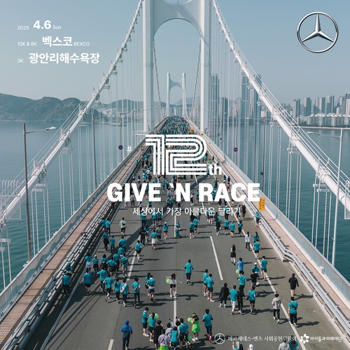 (서울=연합뉴스) 임성호 기자 = 메르세데스-벤츠 사회공헌위원회는 오는 4월 6일 부산 광안대교 등에서 진행하는 기부 문화 확산 달리기 행사 '기브 앤 레이스'의 참가자 접수를 오는 19일부터 진행한다고 13일 밝혔다.