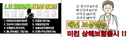 (서울=연합뉴스) 채새롬 기자 = '매년 보상받는 미친 상해보험', '단돈 만 원으로 보장' 등 소비자의 오인을 살 수 있는 보험 광고물에 대해 금융감독원이 점검에 나섰다.