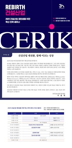 ▲ 한국건설산업연구원(건산연)은 다음 달 18일 서울 강남구 건설회관에서 개원 30주년을 기념하는 '건설산업 재탄생을 위한 혁신 전략 세미나'를 연다고 19일 밝혔다. 세미나에서는 건설산업 리버스(재탄생)의 필요성과 체계, 산업 중점가치 대전환, 산업체계 대전환, 건설시장·상품 대전환의 4가지 주제로 발표가 진행된다. 건산연 한승구 이사장과 이충재 원장 등이 참석한다. 건산연은 1995년 3월 22일 개원했다. (서울=연합뉴스)