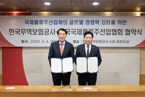 (서울=연합뉴스) 이슬기 기자 = 한국무역보험공사는 4일 서울 종로구 본사에서 한국국제물류주선업협회(KIFFA)와 해외채권 회수 지원을 위한 업무협약(MOU)을 체결했다고 밝혔다.