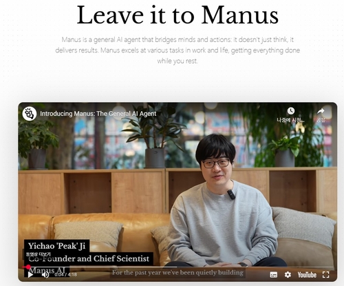 (서울=연합뉴스) 김준억 기자 = 딥시크 이후 중국에서 인공지능(AI) 모델이 경쟁적으로 출시되는 가운데 한 스타트업이 선보인 AI 에이전트(비서)에 관심이 쏠리고 있다.