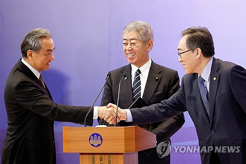 (서울=연합뉴스) 이봉석 기자 = 한중일 3국이 국제정세 혼란과 세계경제 부진 속에 소통 강화와 신뢰 증진, 협력 심화에 대한 필요와 책임이 있다는 데 뜻을 같이했다고 중국 관영 신화통신이 22일 보도했다.