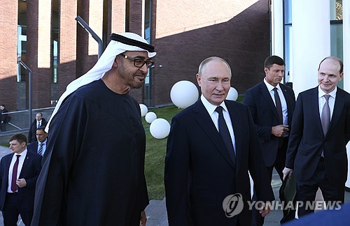 (모스크바=연합뉴스) 최인영 특파원 = 블라디미르 푸틴 러시아 대통령이 24일(현지시간) 셰이크 무함마드 빈 자이드 알나하얀 아랍에미리트(UAE) 대통령과 전화통화하며 우크라이나 문제를 논의했다고 크렘린궁이 밝혔다.