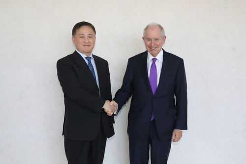 (서울=연합뉴스) 권숙희 기자 = 판궁성 중국 인민은행장이 중국을 방문한 세계 최대 사모펀드 운용회사인 블랙스톤의 스티븐 슈워츠먼 회장 및 미국 경제 석학들과 회동했다.