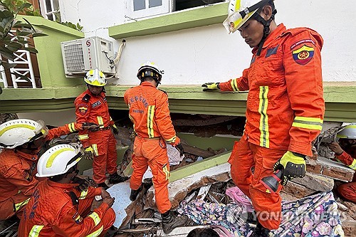 앞서 전날 낮 12시 50분께 미얀마 중부의 미얀마 제2 도시 만달레이에서 서남서쪽으로 33㎞ 떨어진 지점에서 규모 7.7의 강진이 덮쳐 많은 건물이 무너지고 사람들이 매몰되는 등 큰 피해가 발생했다.