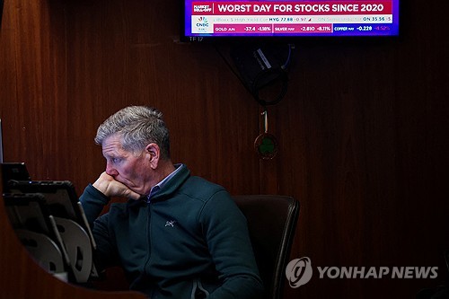 (뉴욕=연합뉴스) 이지헌 특파원 = 도널드 트럼프 미국 대통령이 전 세계 교역국을 상대로 상호관세 부과를 발표한 다음 날인 3일(현지시간) 글로벌 금융시장이 2020년 팬데믹 확산 초기 이후 5년 만에 최악의 공포에 휩싸였다.