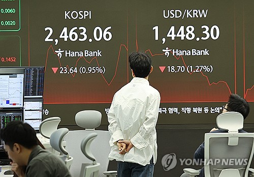 (서울=연합뉴스) 곽윤아 기자 = 4일 코스피가 간밤 뉴욕증시 폭락에도 장중 상승 전환해 2,490대에서 등락하고 있다.