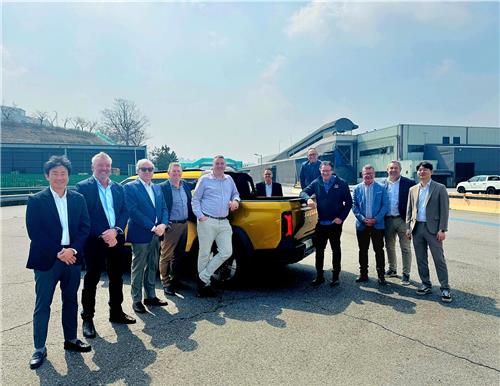 ▲ KG모빌리티(KGM)는 평택 본사에 호주 시장 우수 딜러들을 초청해 격려하고 회사 현황과 발전 전략을 공유했다고 10일 밝혔다. KGM은 2018년 호주에 첫 직영 해외판매법인을 설립했고 올해 7천대 수출을 목표하고 있다. KGM 관계자는 "무쏘 스포츠가 호주 매체 'Drive'로부터 2년 연속 최고의 픽업에 선정되는 등 제품력을 인정받고 있다"며 "다양한 신모델 출시와 차별화된 마케팅으로 판매 물량을 늘릴 계획"이라고 말했다. (서울=연합뉴스)