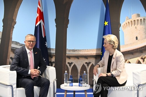 폰데어라이엔 집행위원장은 회담에 앞서 발언을 통해 호주와 국방·안보 문제를 포함해 "전략적 동반자 관계를 확대하고자 한다"고 밝혔다.