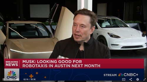 머스크는 20일(현지시간) 미 경제전문 케이블방송 CNBC 인터뷰에서 '6월 말까지 텍사스주 오스틴 도로에서 완전 자율주행 로보택시 서비스를 출시할 수 있느냐'는 질문에 "그렇다"면서 현재 운전자가 탑승한 채로 테스트 중인 가운데 "(운전자의) 개입이 전혀 없이 주행되고 있다"고 밝혔다.