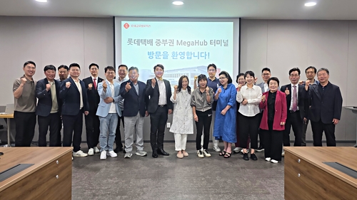 ▲ 롯데글로벌로지스는 한국인 최초의 미국 하원 3선 의원을 지낸 김창준 전 의원이 설립한 정치·경제 리더십 교육과정 '김창준 아카데미' 회원을 진천 중부권메가허브터미널 및 진천풀필먼트센터로 초청해 첨단 물류 시스템을 돌아보는 견학 행사를 했다고 29일 밝혔다. 회원들은 인공지능(AI) 기반의 자동 분류 설비, 주문부터 포장·출고까지 원스톱으로 처리하는 풀필먼트(통합물류) 현장을 체험하며 물류 전반에 대한 이해를 넓혔다고 회사 측은 전했다. (서울=연합뉴스)