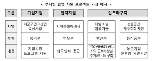 지역혁신프로젝트는 기초자치단체가 각 지역의 특색을 살려 지방소멸 대응 전략을 수립하면 정부가 부처별 정책 수단을 연계해 시너지 효과를 창출하는 것이다. 중기부는 기업지원, 법무부는 외국인력 공급, 행안부와 농식품부는 인프라 구축 등을 각각 담당한다.