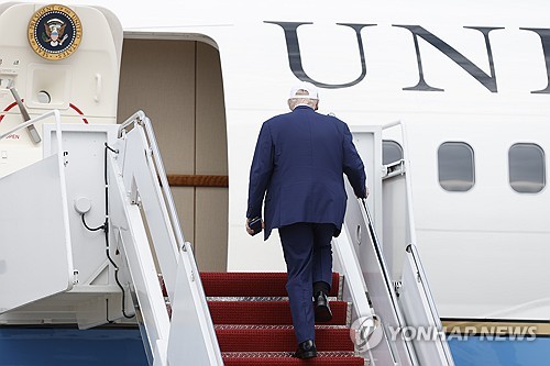 (서울=연합뉴스) 홍정규 기자 = 도널드 트럼프 미국 대통령이 비행기에 오르다 계단에서 휘청이며 넘어질 뻔한 영상이 화제가 되고 있다.