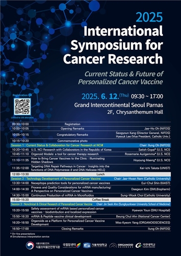 ▲ 식품의약품안전처 소속 식품의약품안전평가원은 '개인 맞춤형 치료용 암백신의 현재와 미래'를 주제로 '2025 국제 암연구 심포지엄'을 개최한다고 12일 밝혔다. 그랜드 인터컨티넨탈 서울 파르나스에서 열리는 이번 심포지엄은 작년 11월 미국 국립암연구소(NCI)와 체결한 국제협력 업무협약(MOU)의 일환으로 마련됐다. 행사에서는 '한미 차세대 항암제 평가기술 개발 국제공동연구' 추진상황, 암 진단·치료·예방 관련 최신 연구정보 등이 교류된다. (서울=연합뉴스)