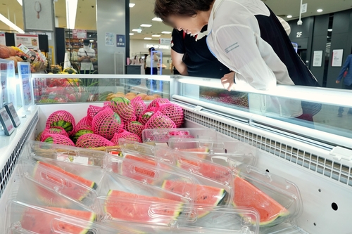 (서울=연합뉴스) 성혜미 기자 = 이달 들어 본격적인 더위가 시작되자 대형마트에서 조각 수박이 인기를 끌고 있다.