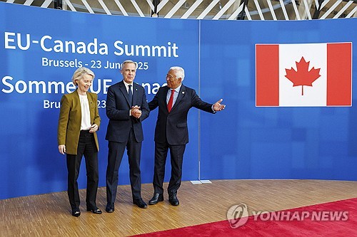 (브뤼셀=연합뉴스) 정빛나 특파원 = 유럽연합(EU)과 캐나다가 23일(현지시간) 도널드 트럼프 미국 대통령의 전방위 압박 속에 무역·안보 분야에서 더 밀착하기로 합의했다.