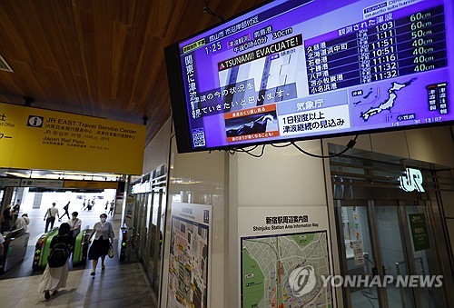 교통편 운항·오염수 방류 중단…日정부 "경보 해제까지 계속 대피해야" 당부
